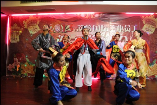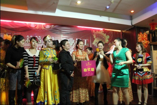抽奖环节与精彩节目交叉进行,台上精彩节目轮番上演,天桃会所个人才艺表演拉丁桑巴舞、金湖会所《火把节》让我们感受了舞蹈的魅力与激情,随后表演秀《相亲》及一曲《好汉歌》的经典老歌新唱配以穿越的表演再次将晚会推向了高潮。